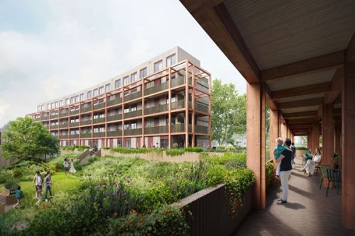 Eerste modulaire LVL houtbouw appartementengebouw van 5 hoog