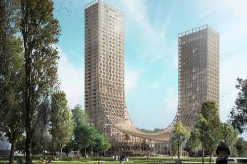 Het grootste houten gebouw ter wereld komt in Eindhoven te staan. Het wordt een enorm gebouw met twee torens van 133 en 100 meter hoog en een oppervlakte van dertien voetbalvelden. The Dutch Mountains, zoals het gebouw heet, moet in 2030 klaar zijn.