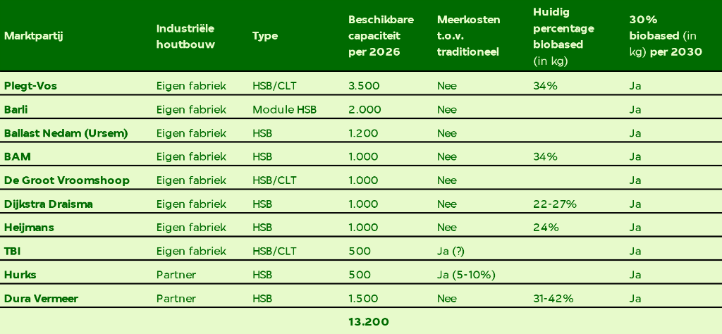 In totaal zal in 2026 dus al 13,6% van de 100.000 nieuwbouwwoningen uitgevoerd worden in CLT of HSB (houtskeletbouw). Maar dat wil niet zeggen dat er niet nog flink wat slagen te maken zijn.